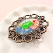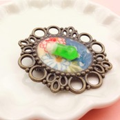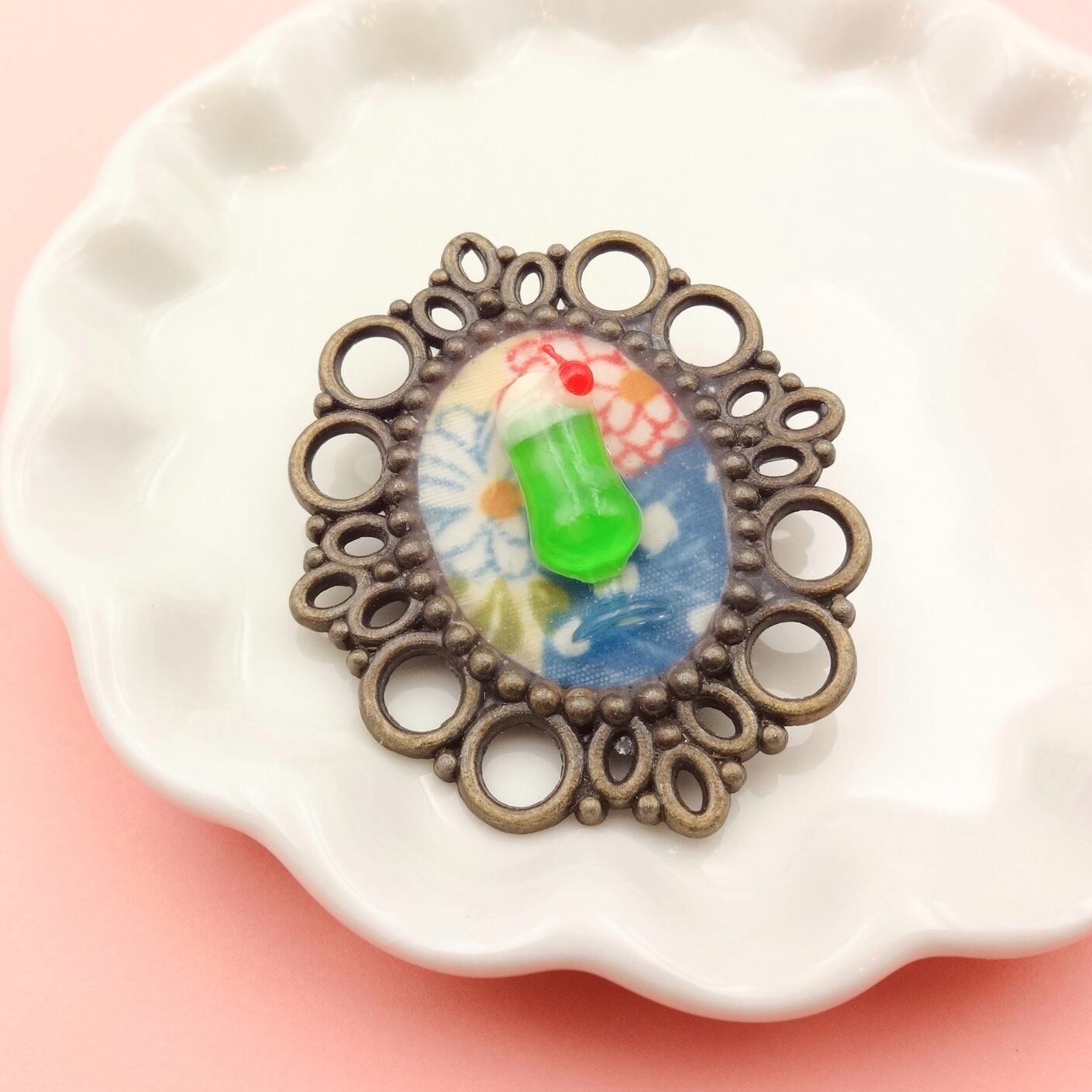 クラシックなデザインのフレームに小さなクリームソーダをあわせたブローチです♪