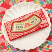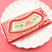 昭和初期のドリンクラベル(当時の実物)にヴィンテージの着物生地をあわせたブローチです♪