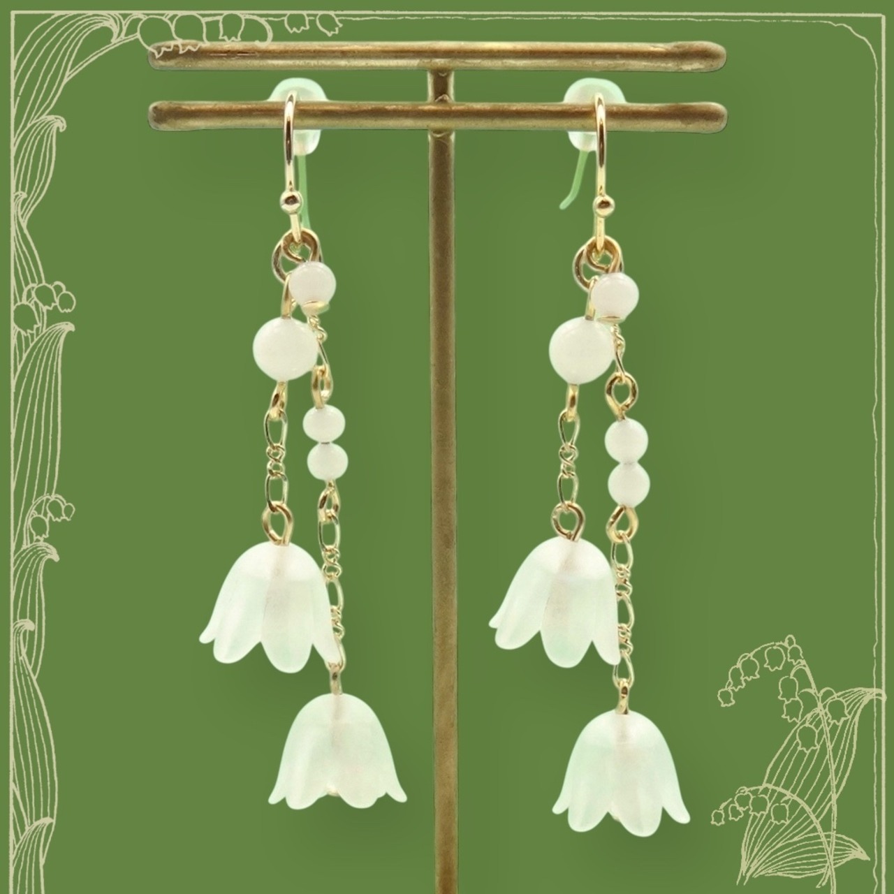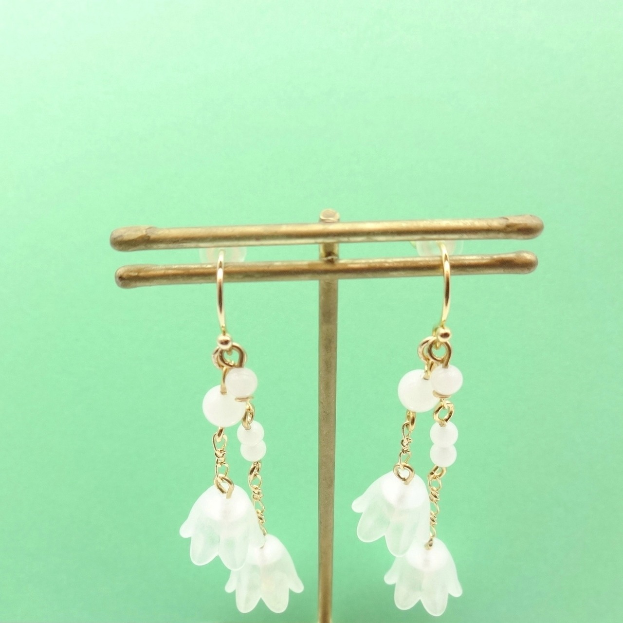 耳元でしゃらしゃらと揺れるすずらんが可憐なデザイン。
