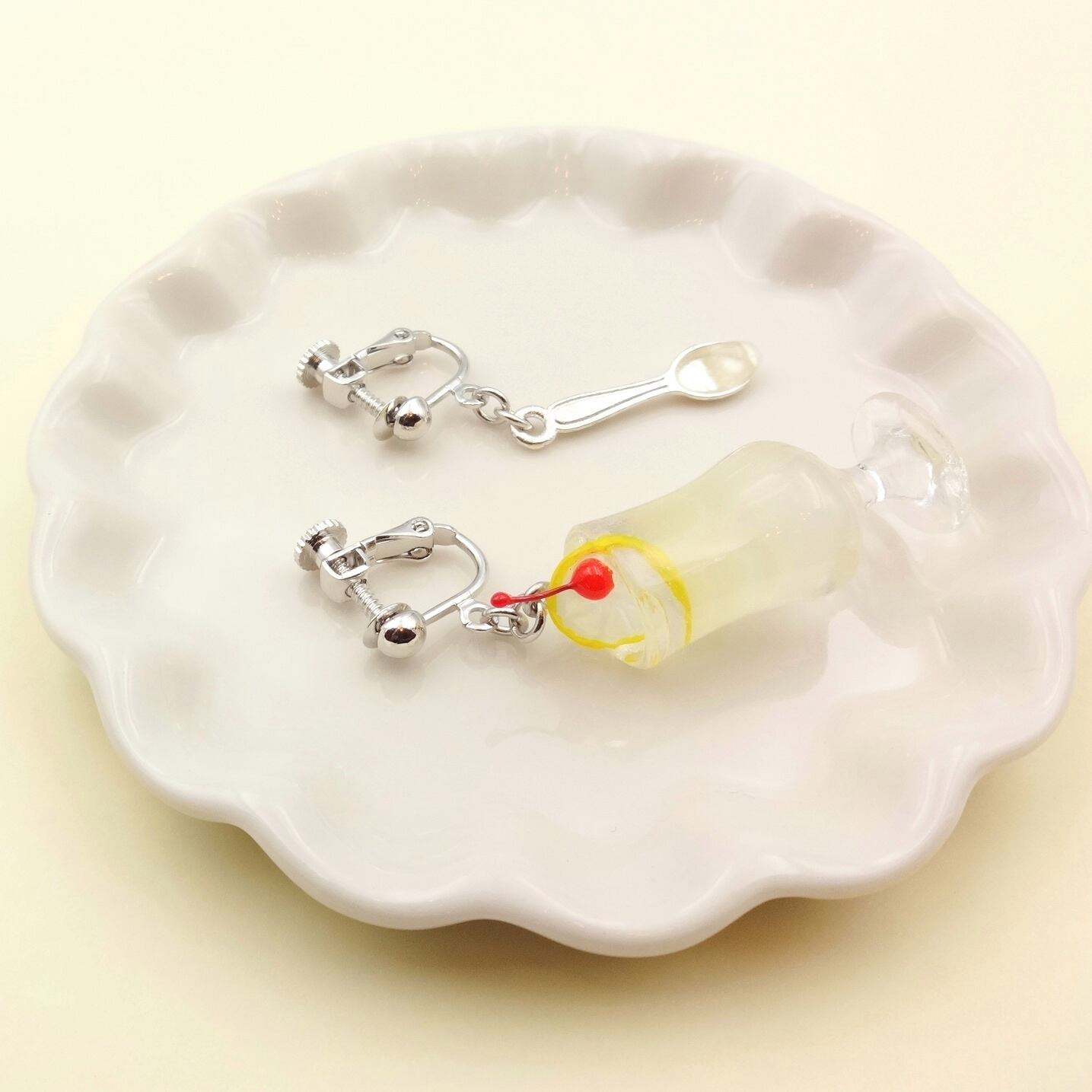 レトロなグラスを使ったレモンスカッシュの耳飾りです♪