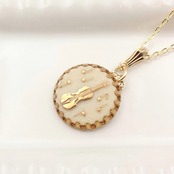 王冠のようなデザインのフレームに、ヴァイオリンと音符が描かれたヴィンテージガラスをあわせました。