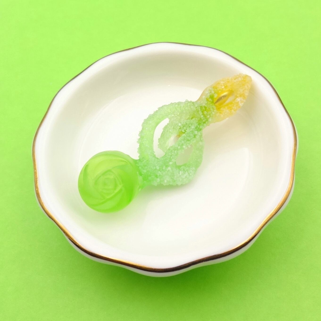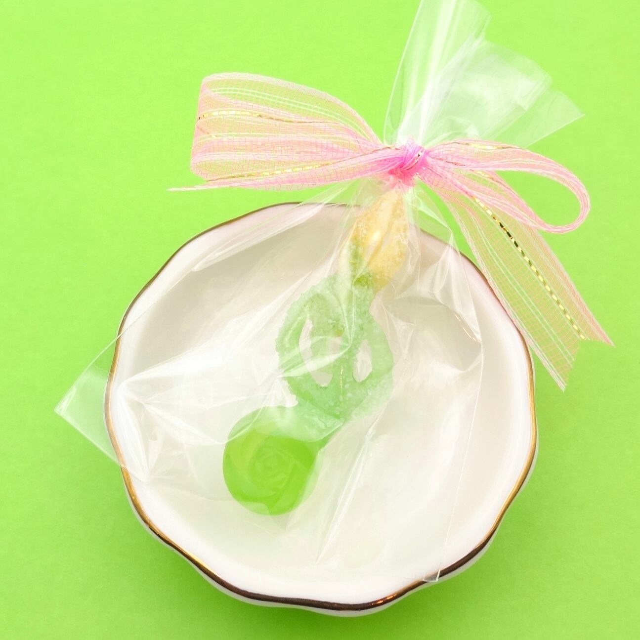 ジューシーなメロンとレモンのドロップを、楽しいト音記号の形に仕立てました。