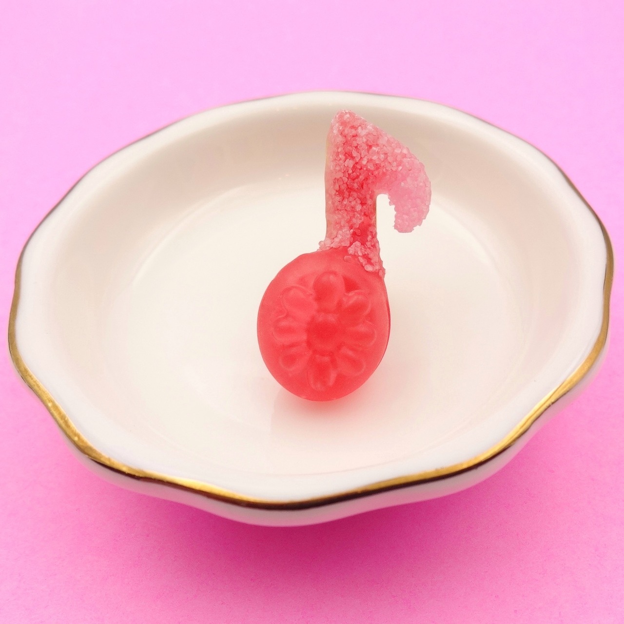 ジューシーなイチゴのドロップを、楽しい音符の形に仕立てました。