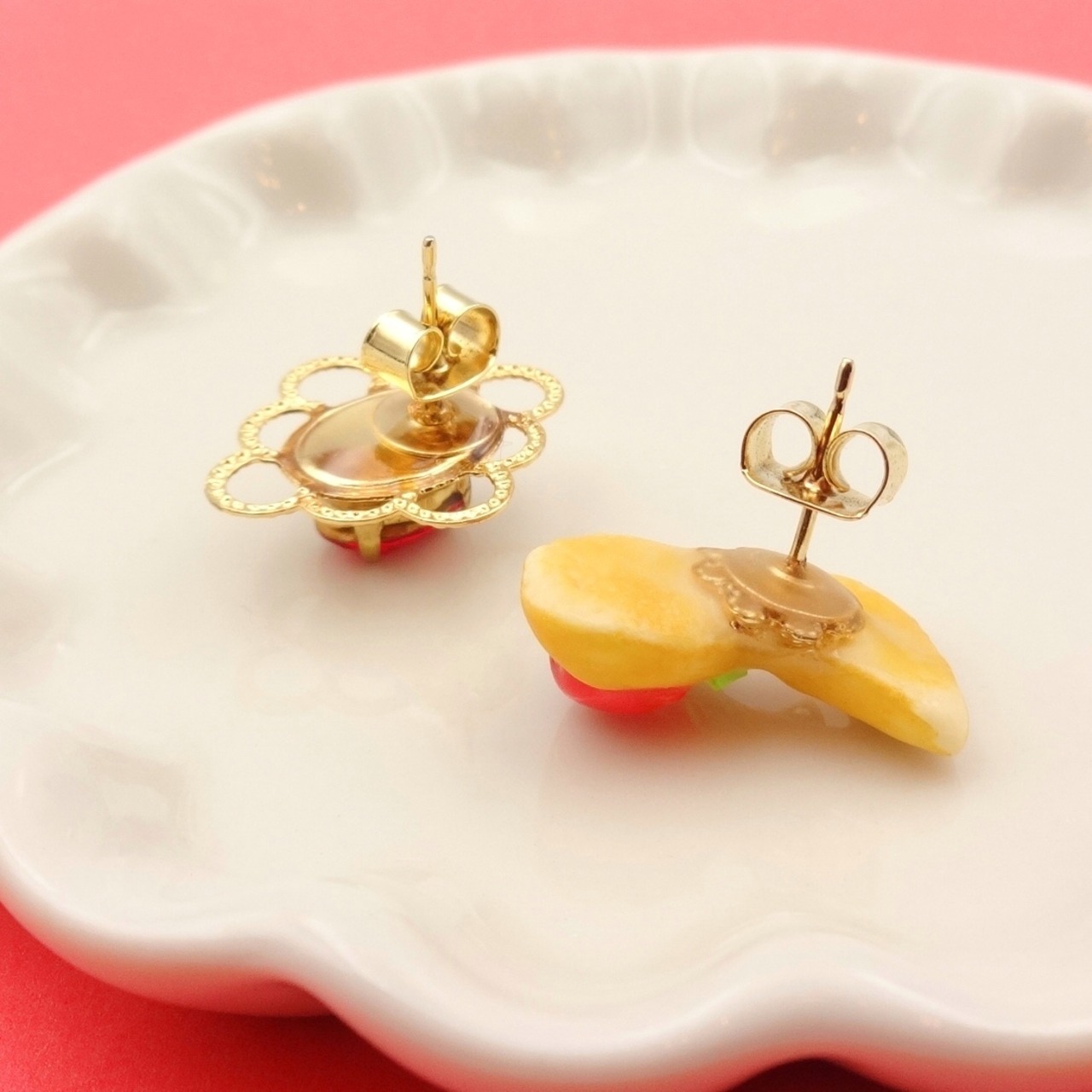 レトロな音符の形の、絞り出しクッキーと宝石の耳飾りです♪