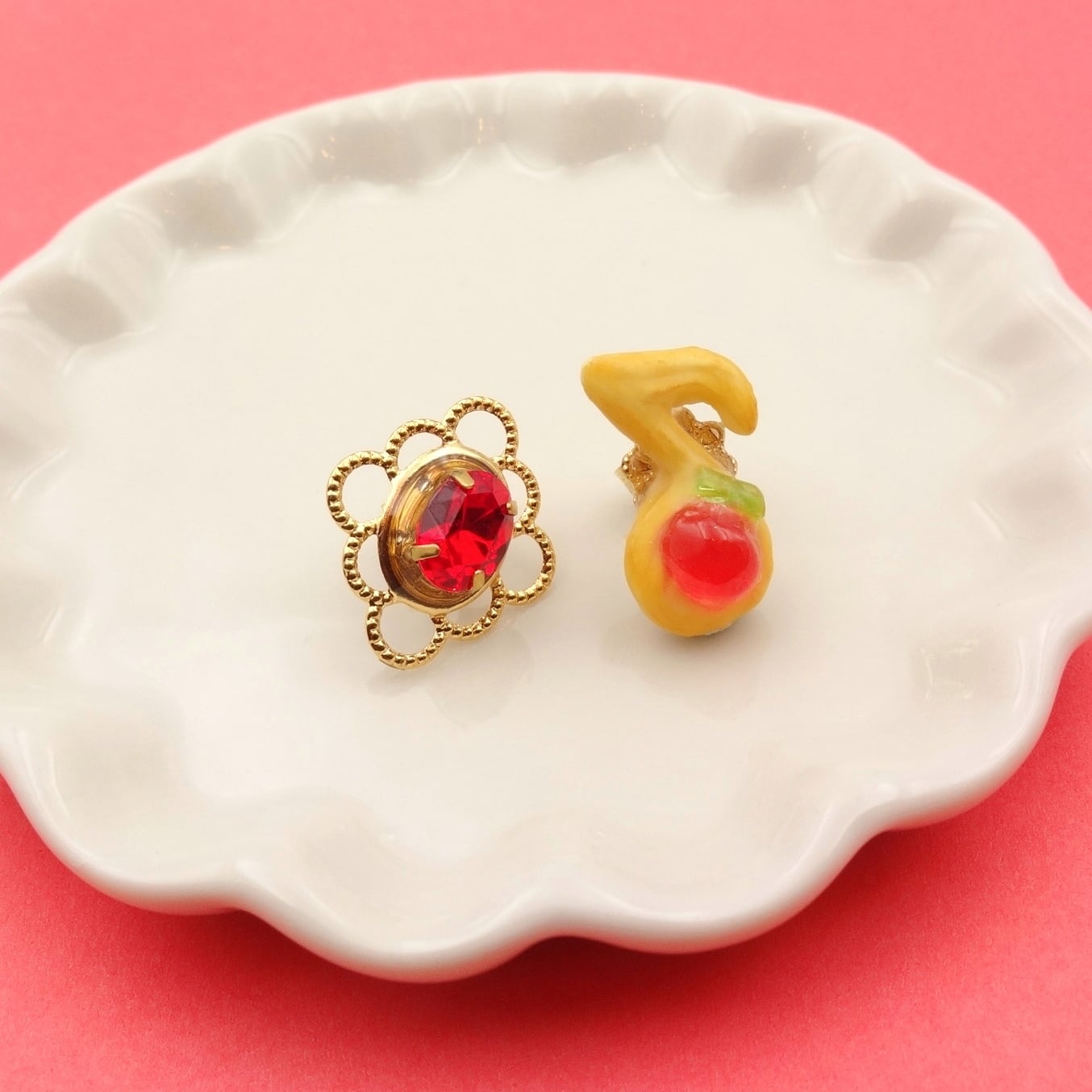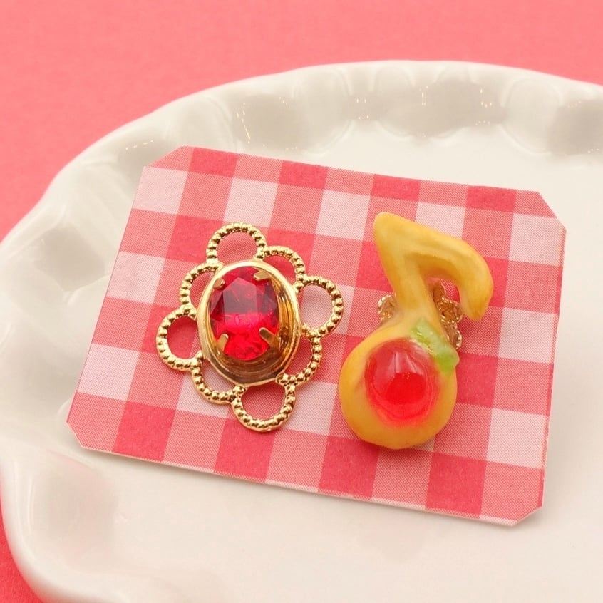 キラキラの宝石とお菓子モチーフがペアになった嬉しいデザインです♪