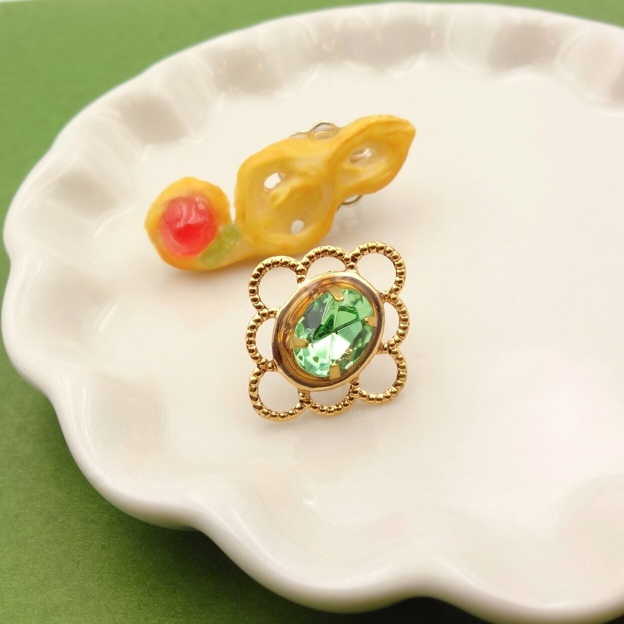 宝石はヴィンテージのスワロフスキー(ウランガラス)を使っています。