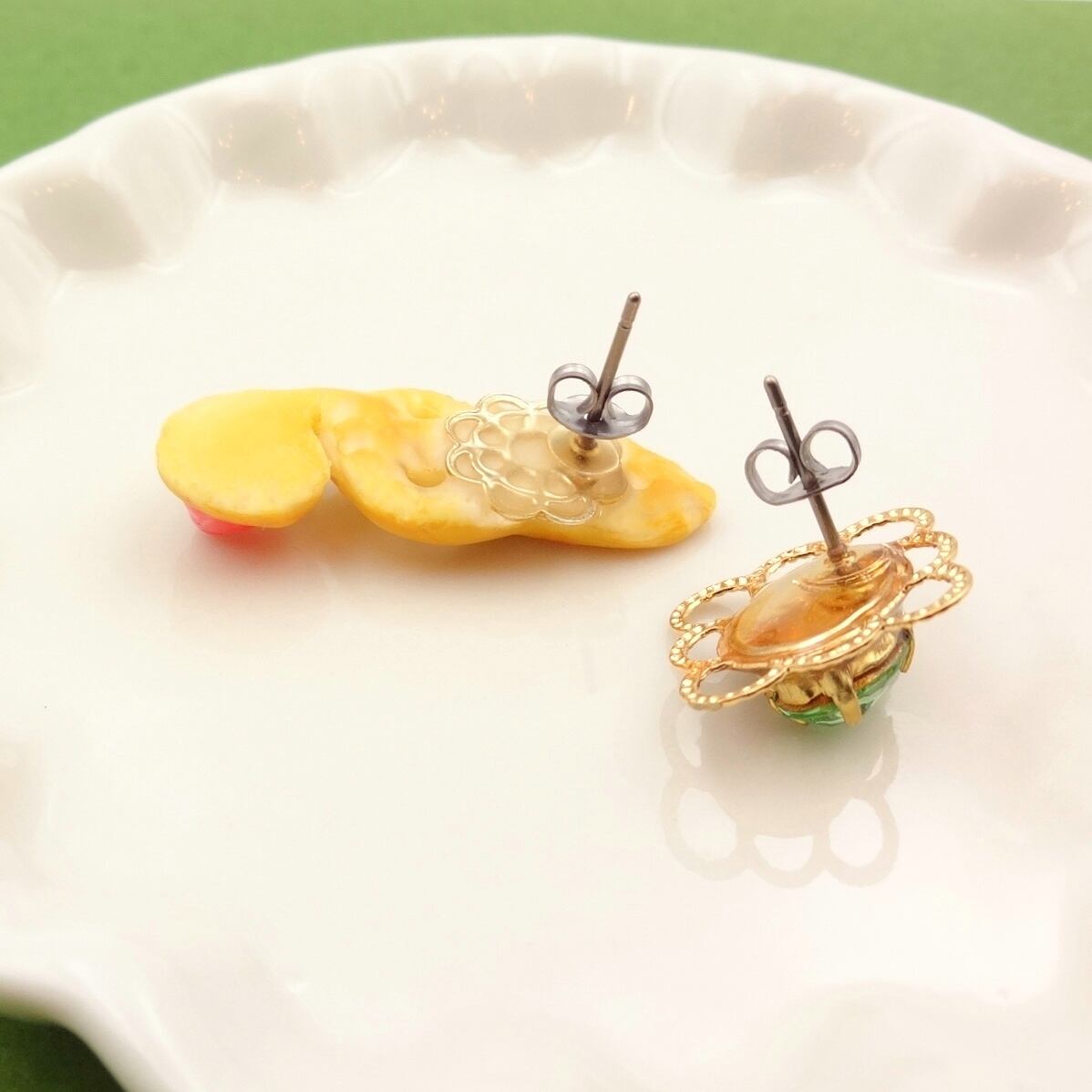 樹脂粘土、樹脂、ガラス(ヴィンテージウランガラス)、チタン(ポスト、キャッチ部分)