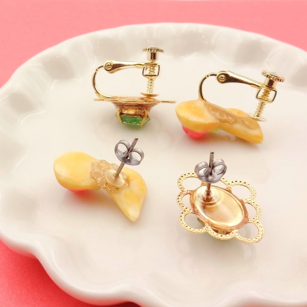 樹脂粘土、樹脂、ガラス(ヴィンテージウランガラス)、チタン(ポスト、キャッチ部分)