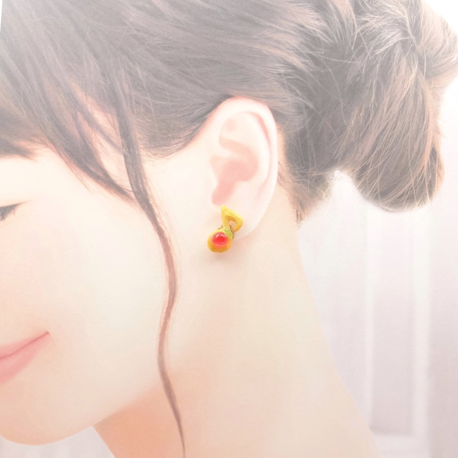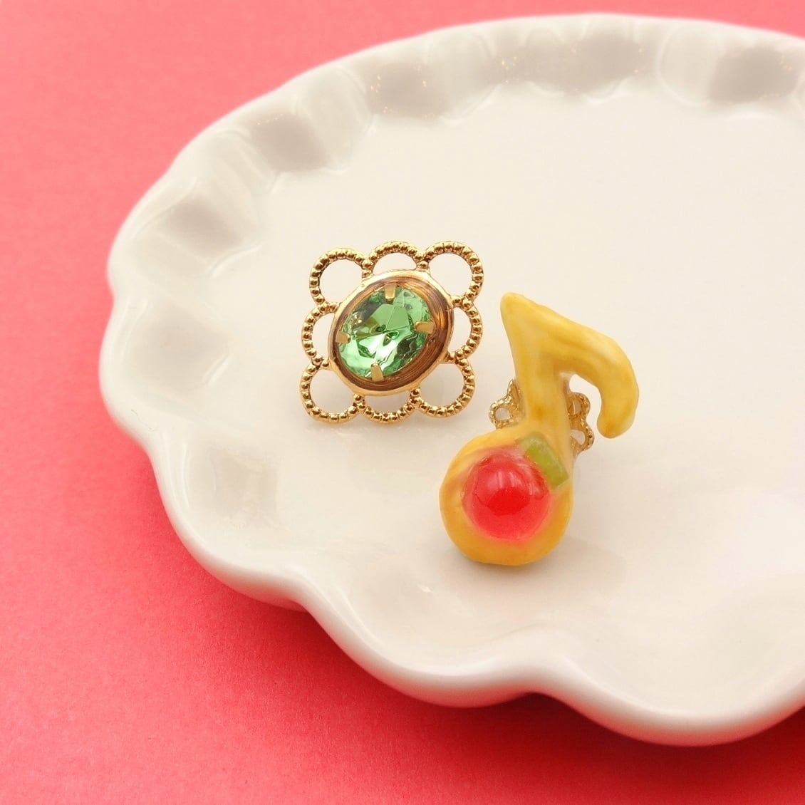 レトロな音符の形の、絞り出しクッキーと宝石の耳飾りです♪