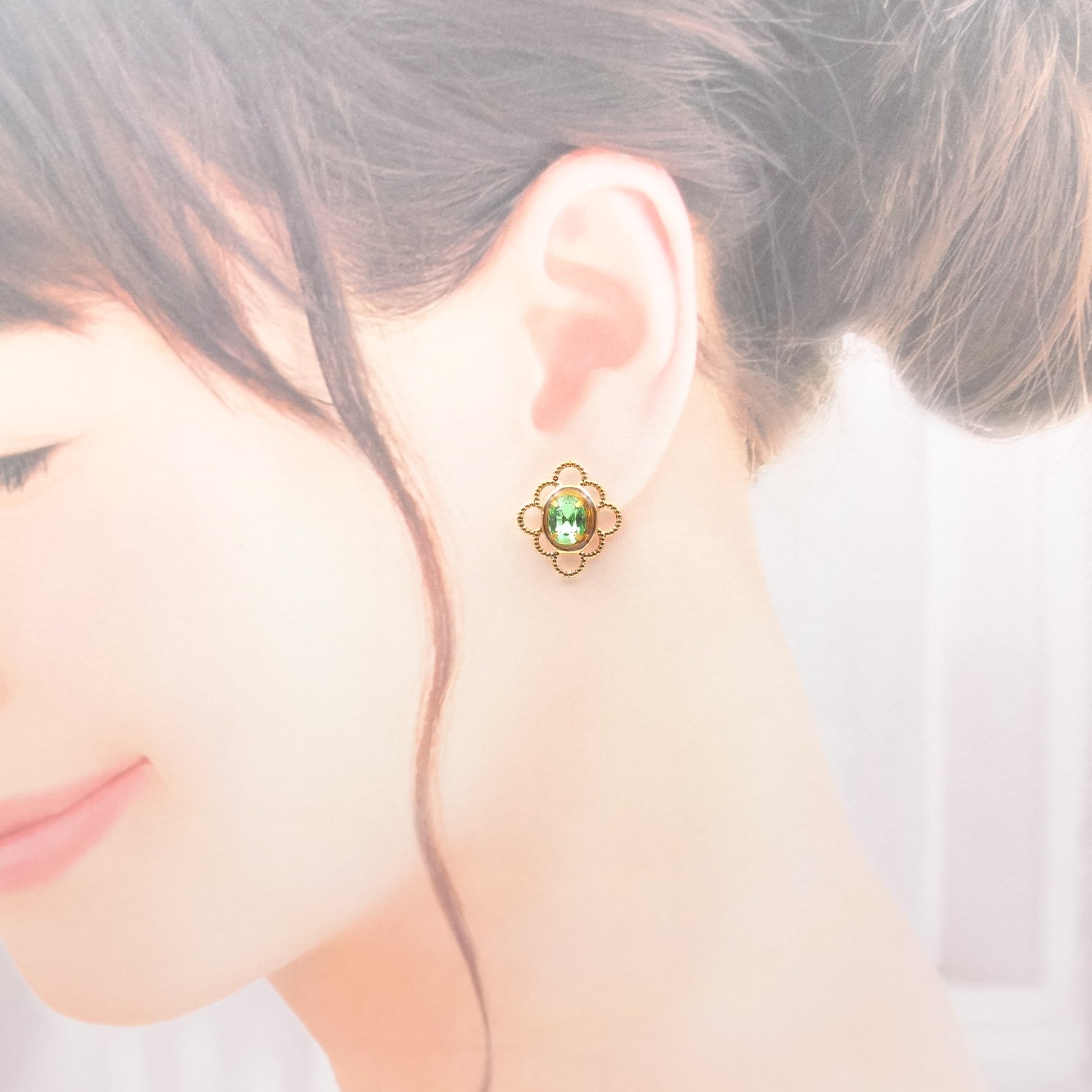 宝石はヴィンテージのスワロフスキー(ウランガラス)を使っています。