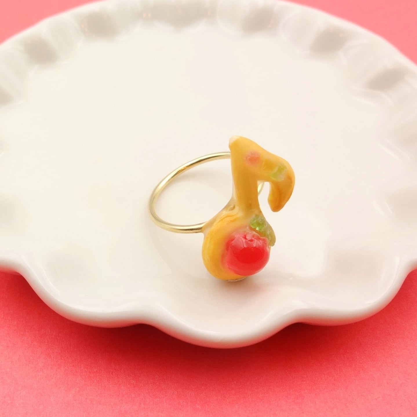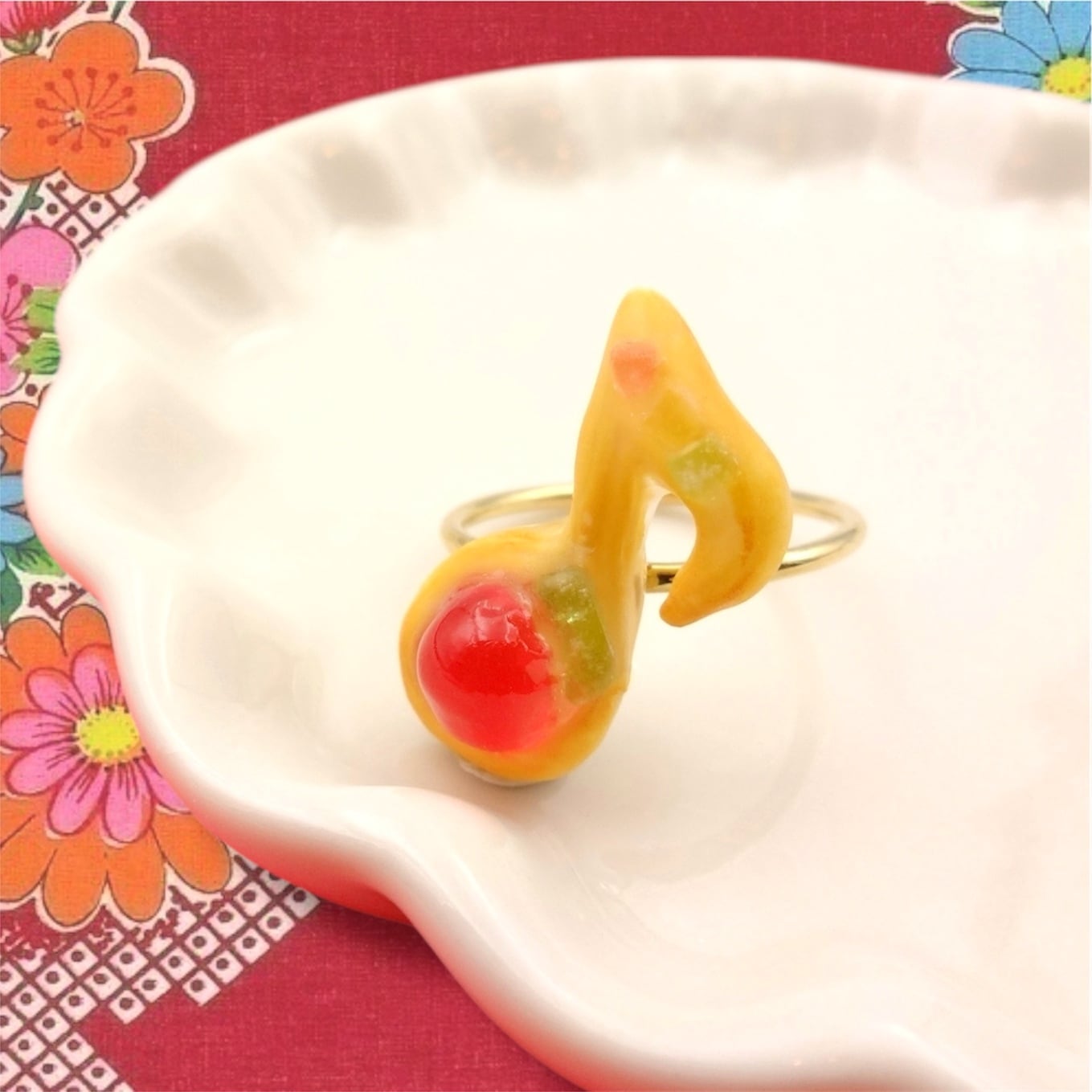 レトロな音符の形の、絞り出しクッキーの指輪です♪