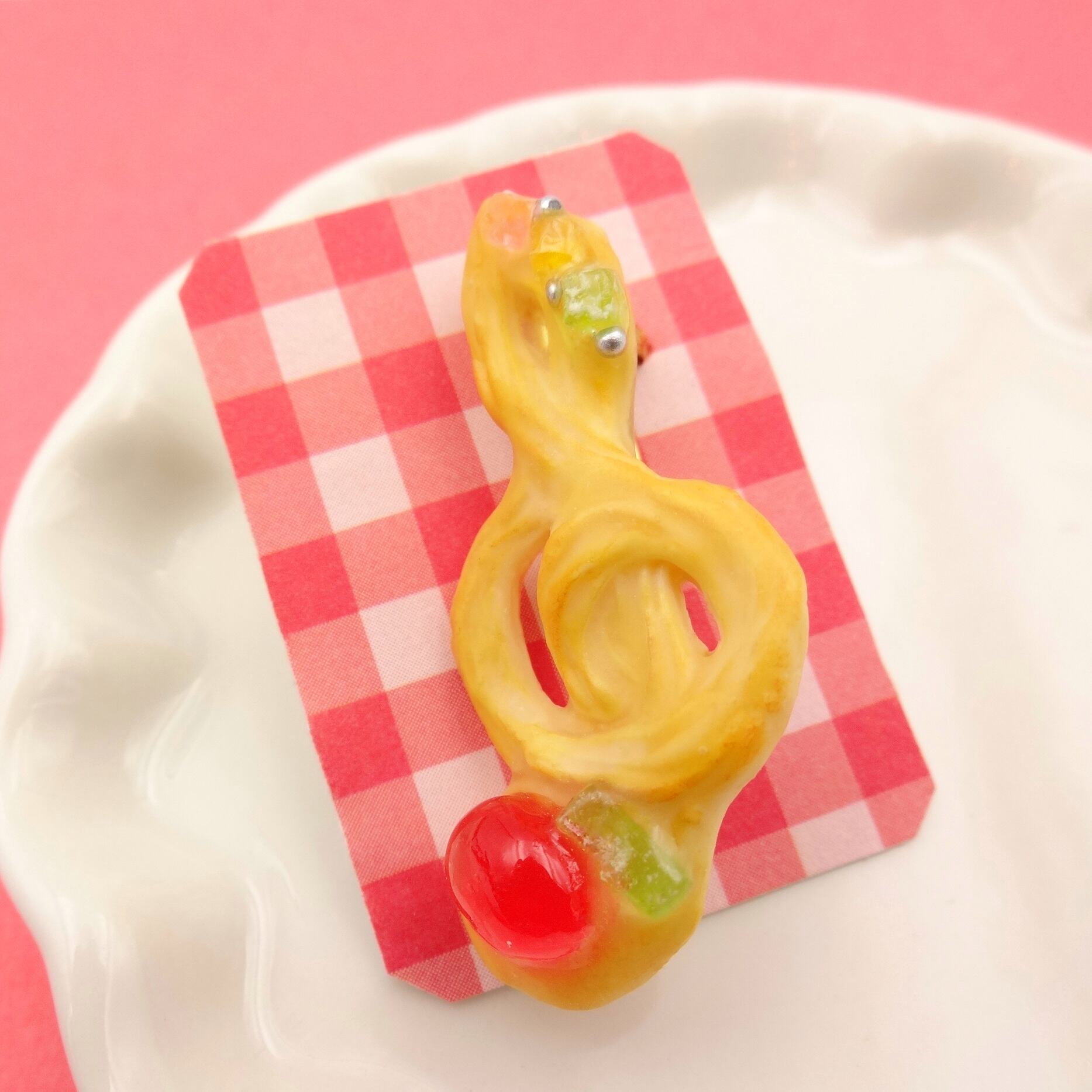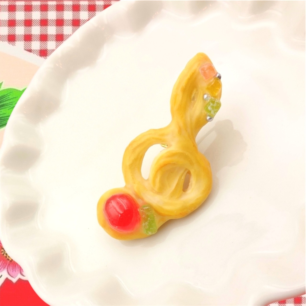 レトロなト音記号の形の、絞り出しクッキーのブローチです♪