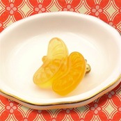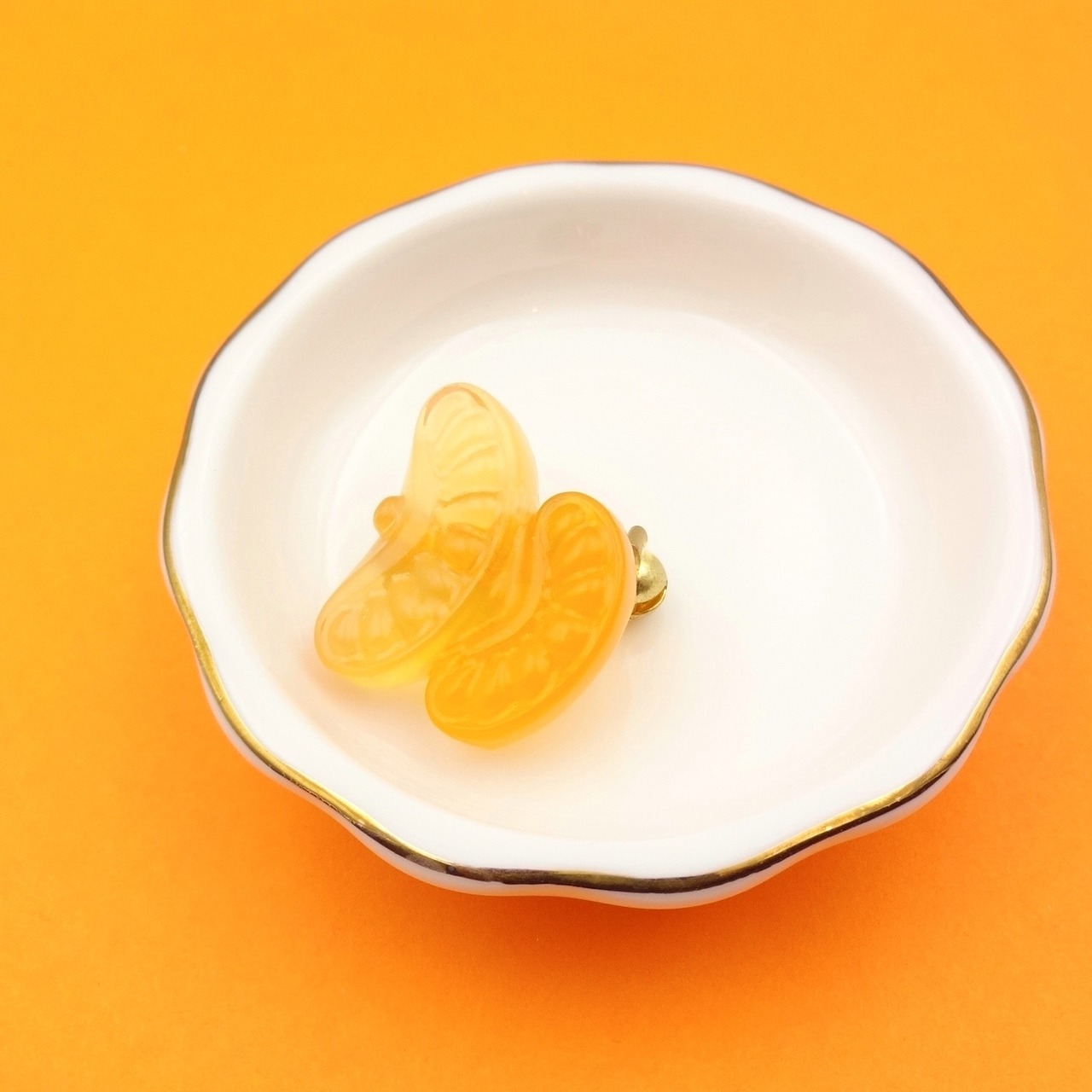 ジューシーなミカンのドロップを、2粒並べた楽しいデザイン。