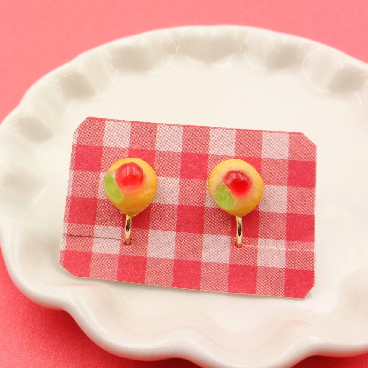 さくさくのクッキーにドレンチェリーとアンゼリカをトッピングしました。