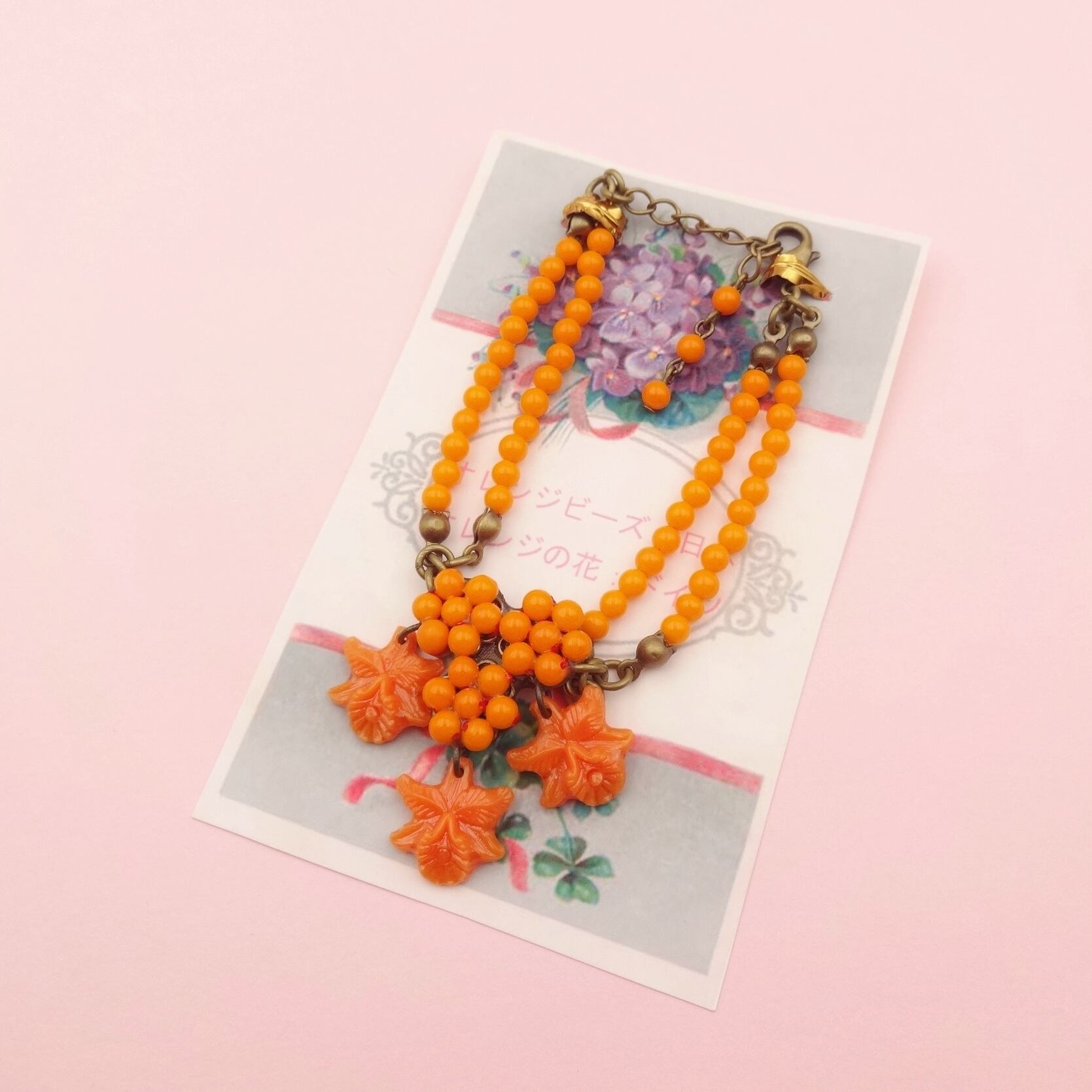 オレンジのガラスビーズ:日本製ヴィンテージ