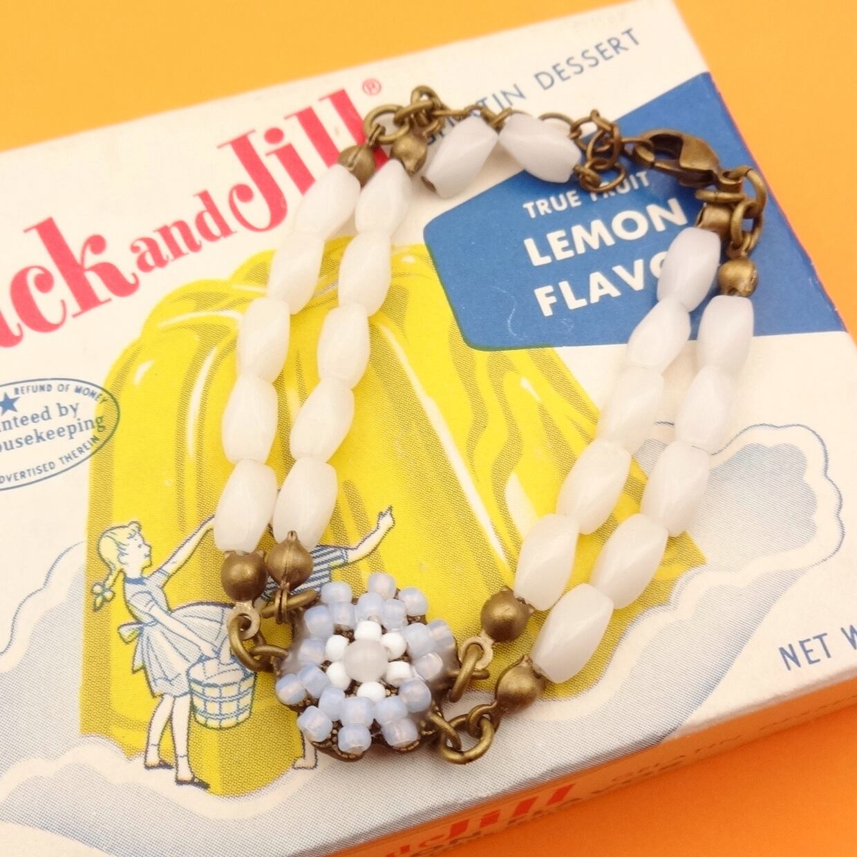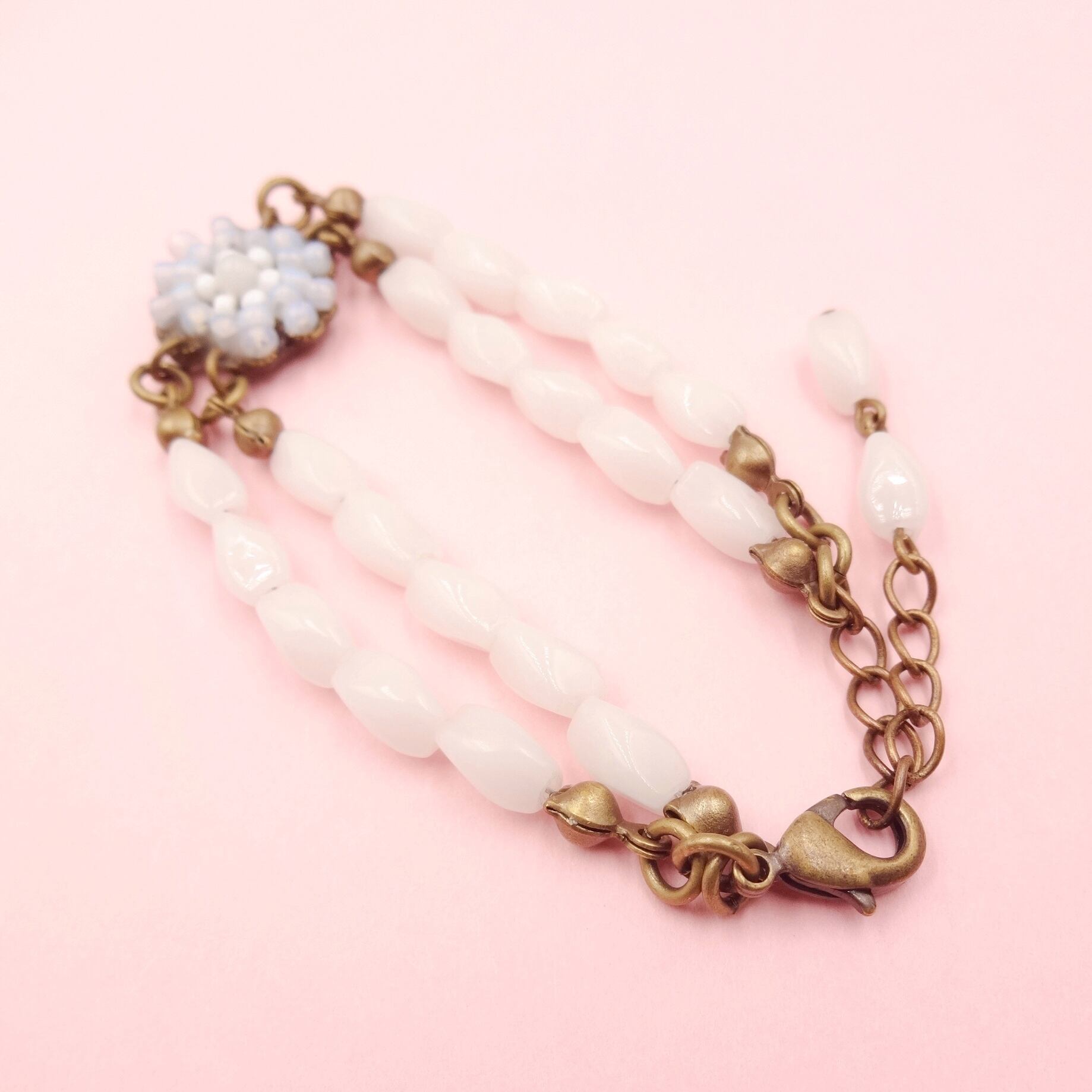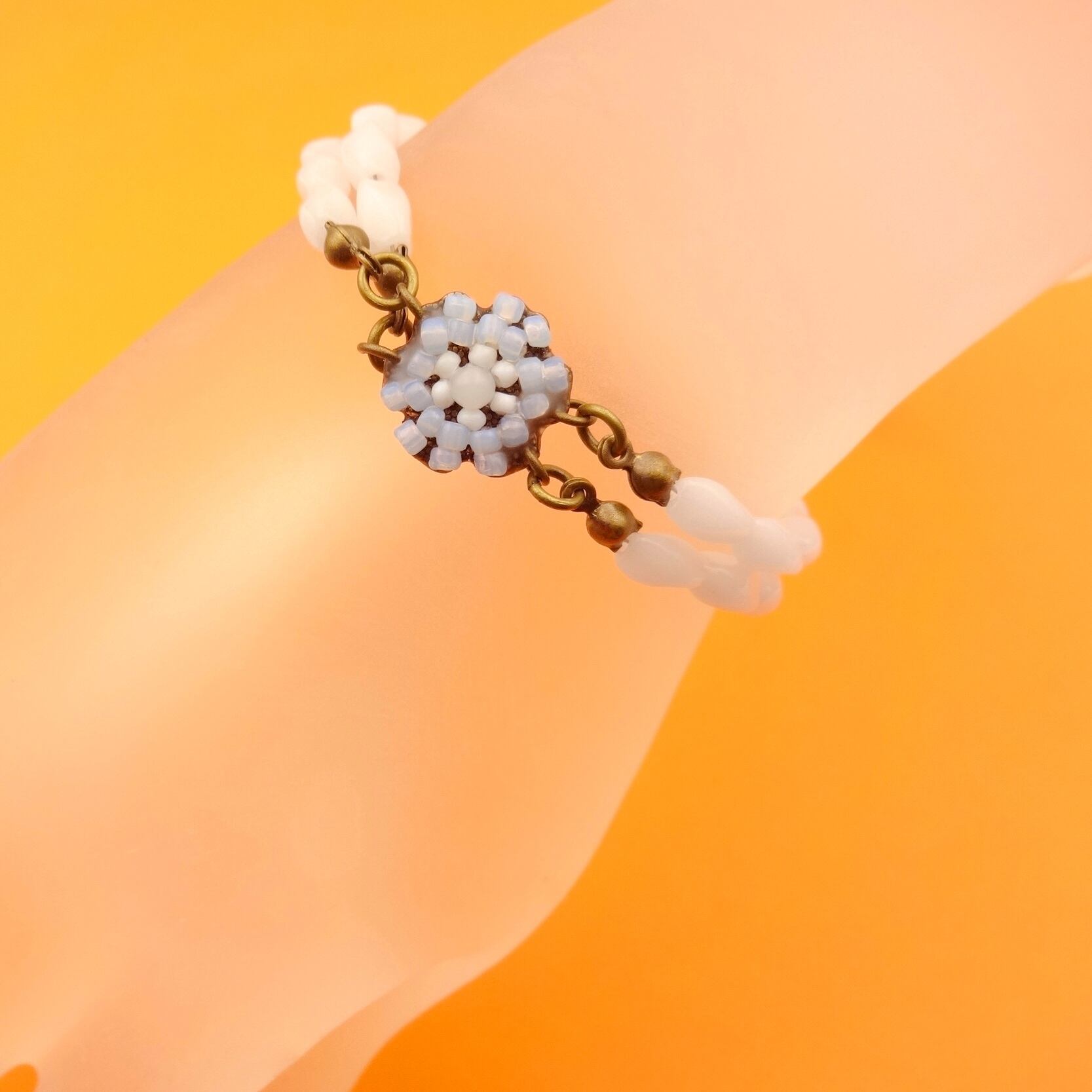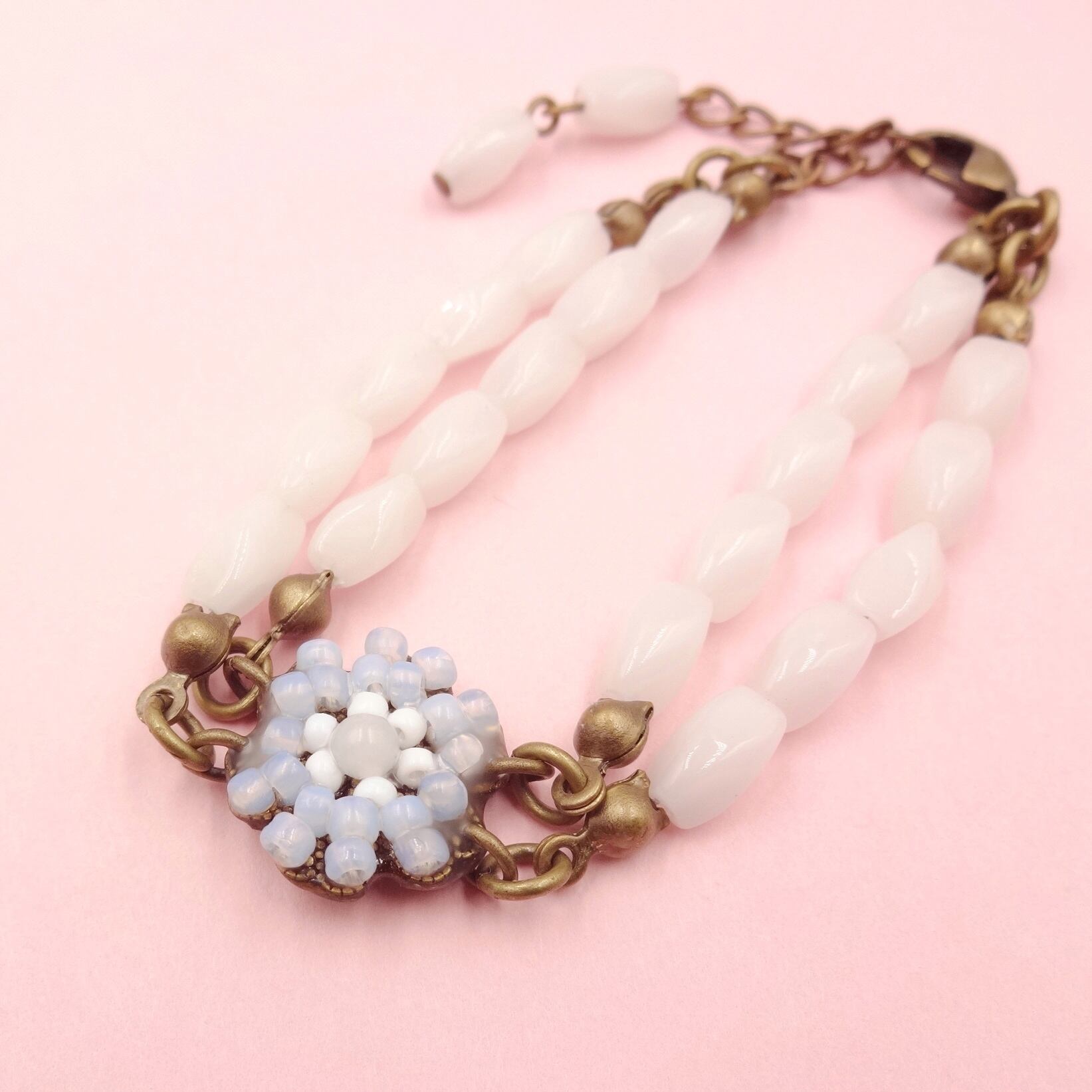 ブレスレット部分の白ガラスビーズ:1960年代フランスヴィンテージ