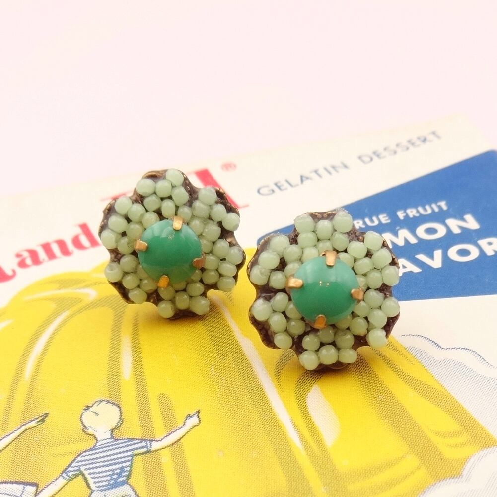 緑色のガラスビーズ:フランス製ヴィンテージ
