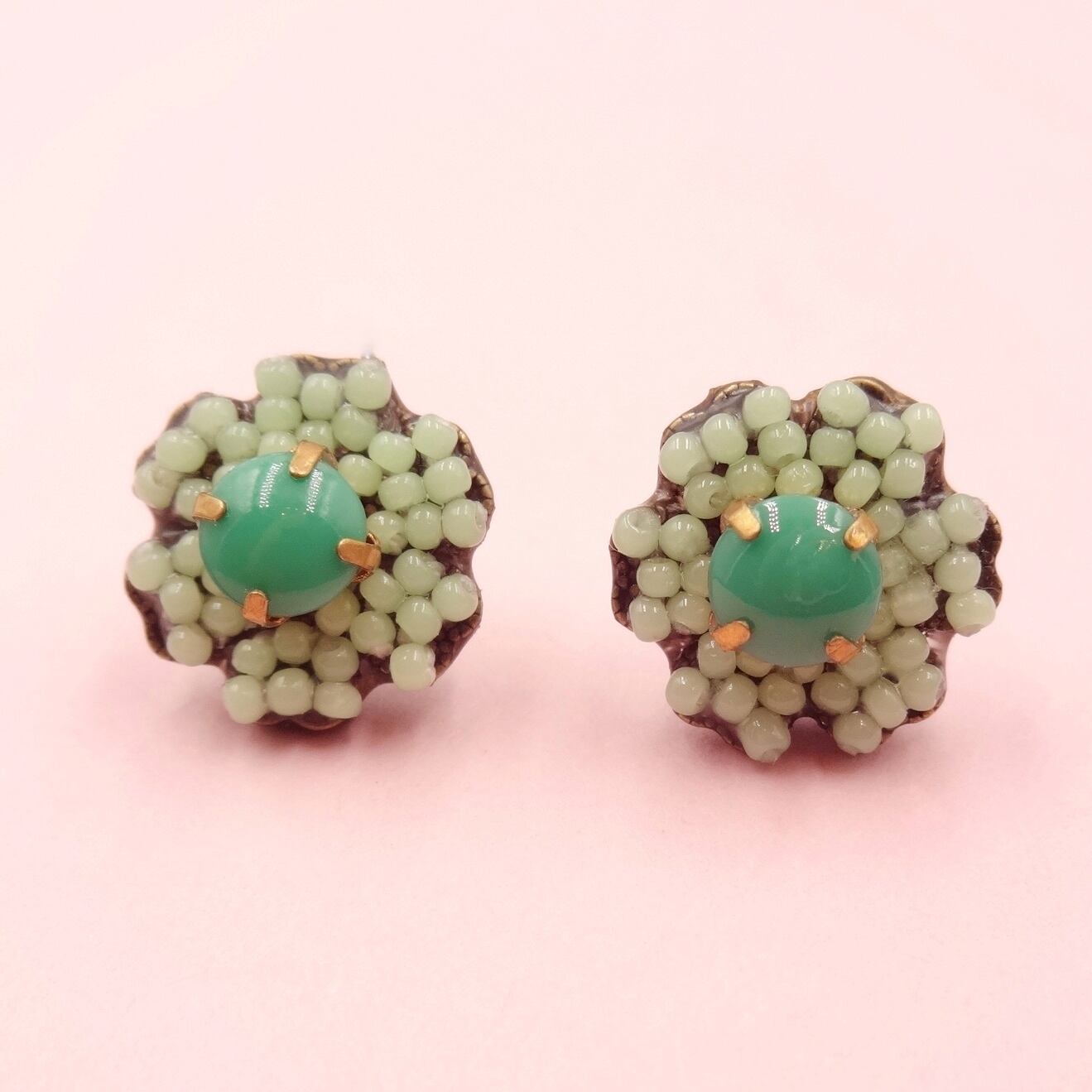 花芯の緑ガラス:オーストリア製ヴィンテージ(スワロフスキー)