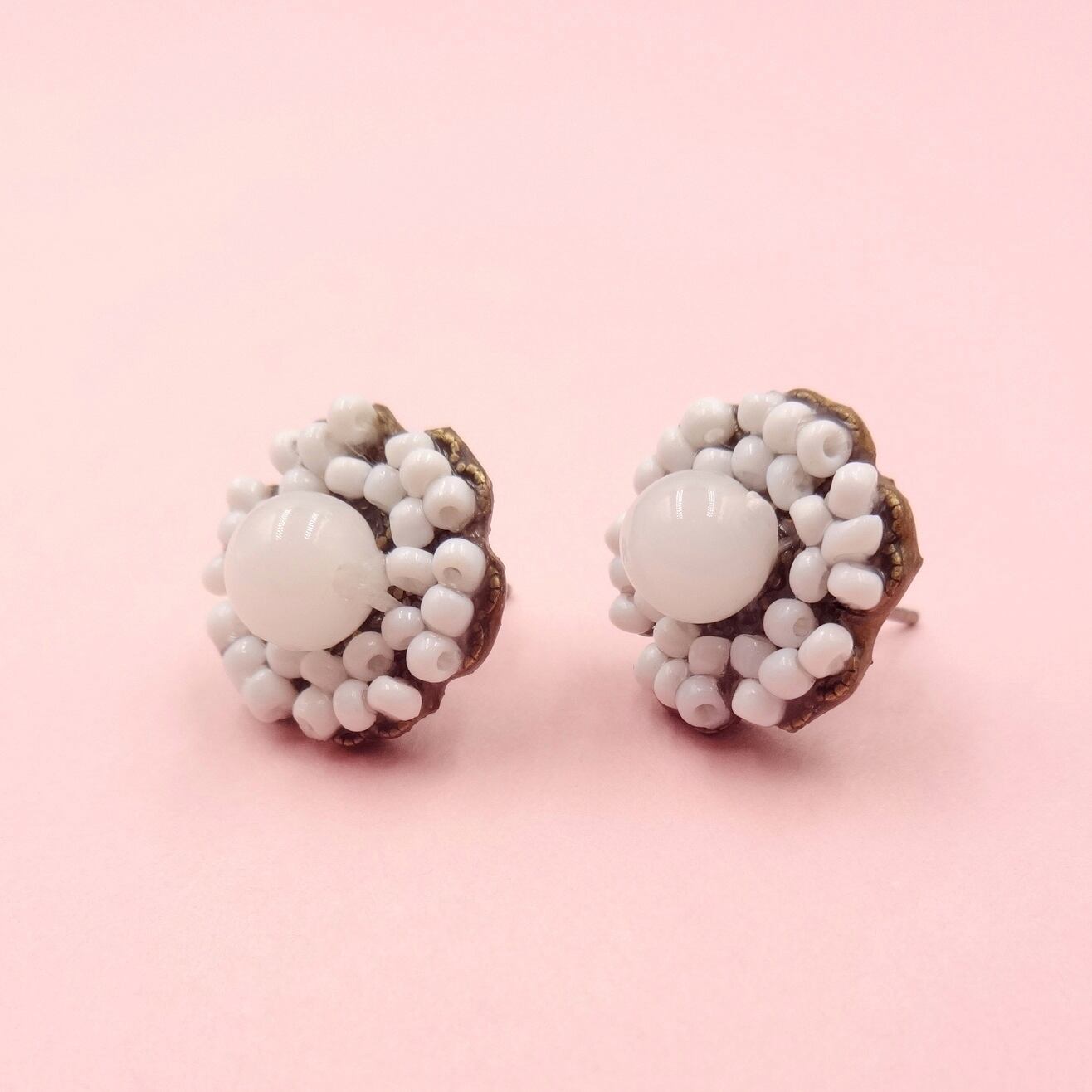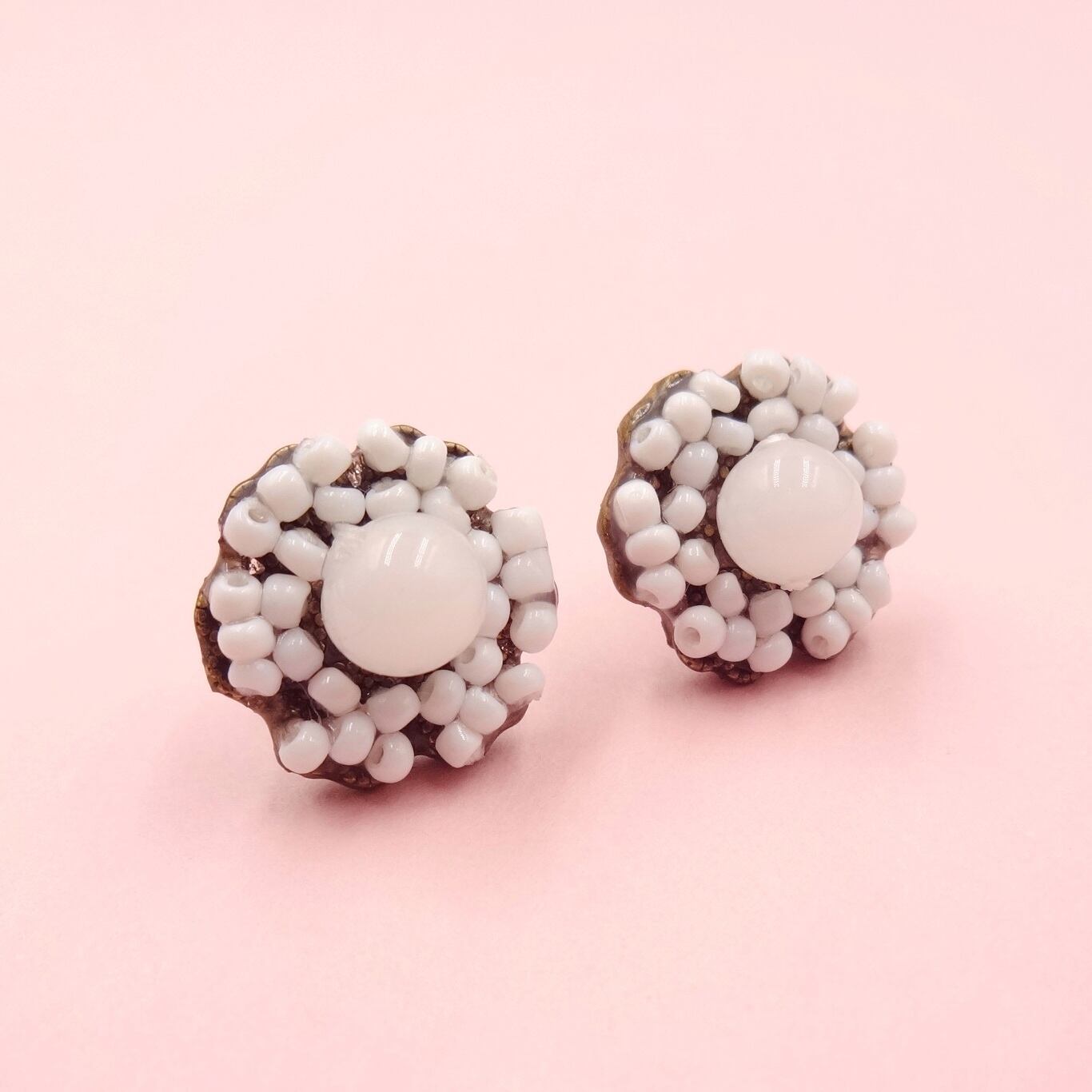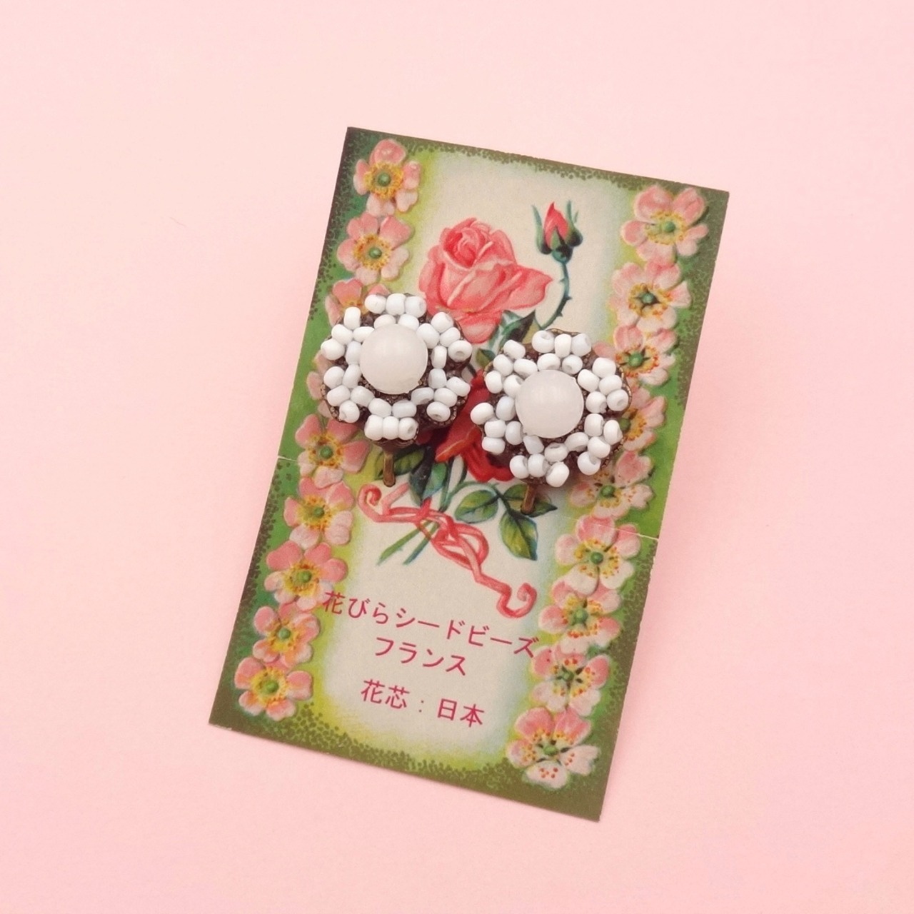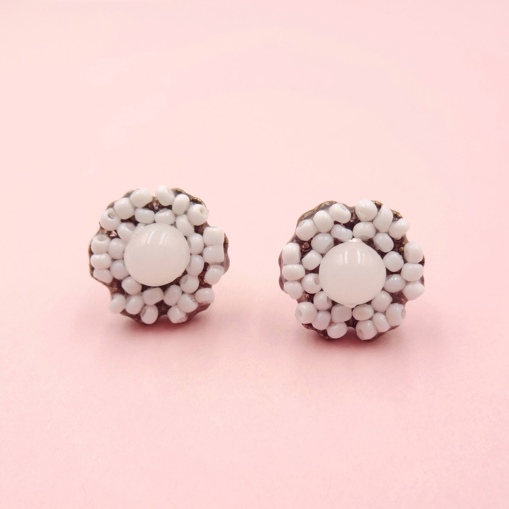 白色のガラスビーズ:フランス製ヴィンテージ