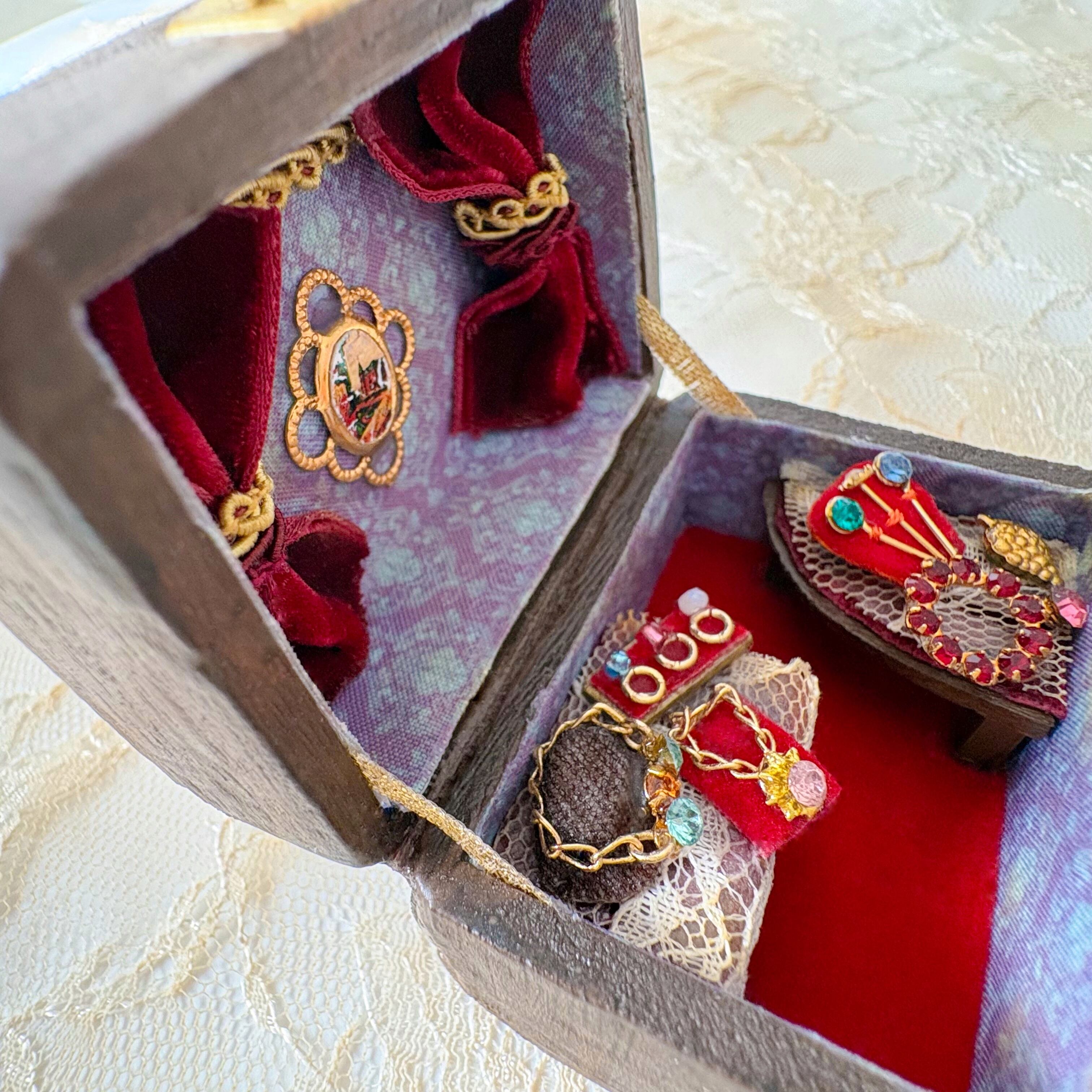 コンパクトのようなハウスを開けると、そこにはきらびやかなジュエリーがたくさん。